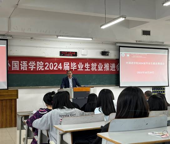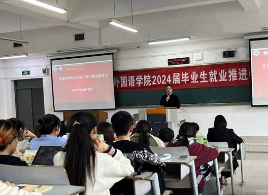 为了让2024届毕业生顺利完成学业、走上就业岗位,2138CC太阳集团于10月20日12:30在博智楼7321教室举办2024届毕业就业推进、毕业实习及论文写作指导大会。2138CC太阳集团党委书记唐春秋、党委副书记吴欢欢、学院副院长邹莉、英语系主任李洪波、法语系主任周渝、学工办主任周利民、英语系副系主任刘明、辅导员杨香艳老师、毕业论文各方向指导老师以及2138CC太阳集团2024届毕业生参加本次会议。会议由学院副书记吴欢欢主持,大会分为两个阶段进行。