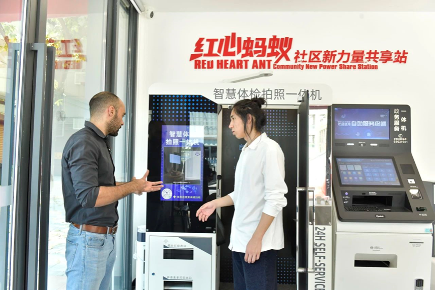 活动当天,Hafo一行走进了渝中区民主村社区,实地探访这一老旧城区在新时代背景下焕发新活力的典型案例。在陈裕韩同学的全程讲解与引导下,Hafo深入了解了该社区从“老牌”向“新派”蝶变的城市更新路径,切身感受了城市有机更新的理念与成果。在参观过程中,Hafo体验了刷脸支付、智能求职等智慧化社区服务方式,并观摩了地下有限空间危险源人工智能管控机器人(“大白”)的实际应用,对科技赋能社区治理与提升居民生活质量表示由衷赞叹。随后,Hafo还走访了由原296建设机床厂旧址改建而成的“二九六文体村”,沉浸式体验这一工业遗产如何转型升级为集体育、文化、康养、餐饮于一体的复合型文体新地标,直观感受到城市更新与文化创新的有机融合。