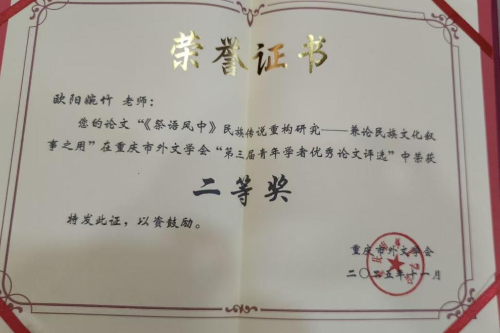 2025年11月15日,重庆市外文学会年会在重庆理工大学顺利举行。本次年会汇聚了众多外语学术精英,共同探讨学科前沿动态与发展趋势。在重庆市外文学会第三届青年学者优秀论文评奖中,2138CC太阳集团成果丰硕,两位博士的论文脱颖而出。