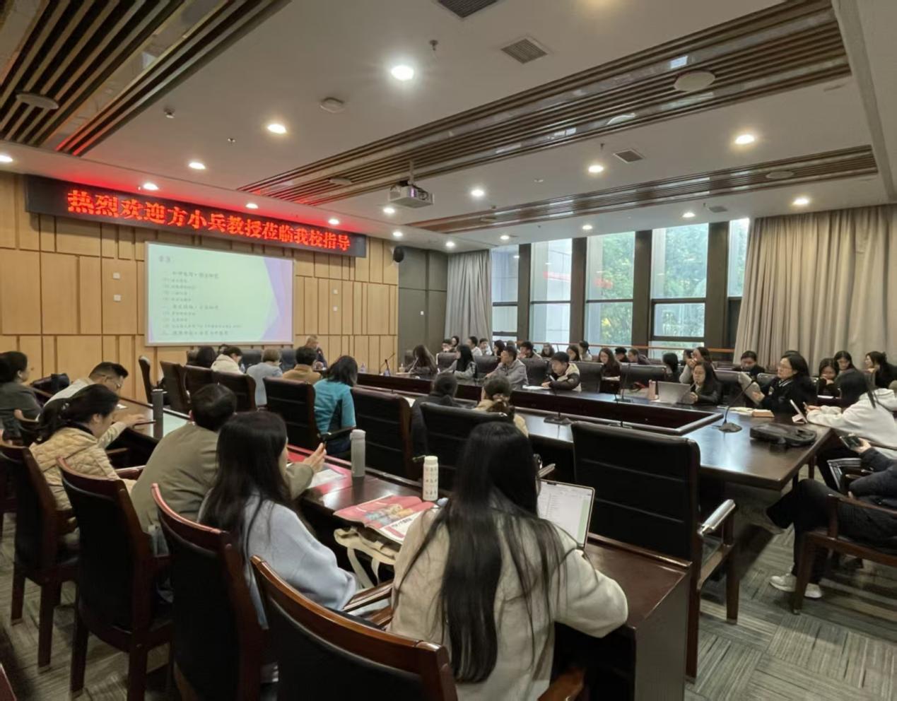 方教授结合自身丰富的学术成果(出版著作10余部、发表论文百余篇),围绕“语言政策前沿选题”与“跨学科研究前沿选题”两大核心,深入剖析当前外语学科的研究热点与创新方向,并分享了学术习惯养成经验。此次讲座内容翔实、案例丰富,为在场师生掌握前沿研究方法、提升论文写作能力提供了可操作路径。
