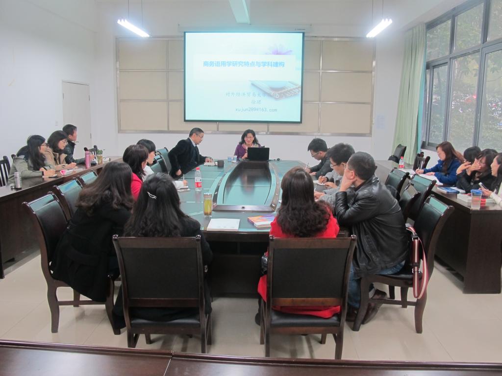 2014年11月21日下午,应外语学院院长邀请,对外经济贸易大学博士生导师、全国英语写作研究会秘书长徐珺教授来我院讲学。外语学院20余位教师参加了此次讲座。