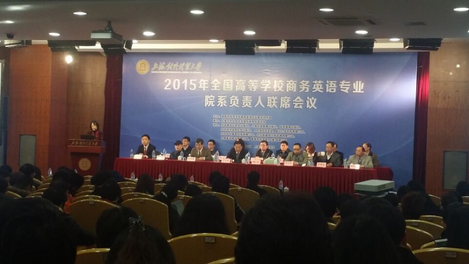 12月11-12日,2015年全国高等学校商务英语专业院系负责人联席会议在上海对外经贸大学召开,来自全国约150所院校的350余名院系负责人、专家和教师代表参加了此次盛会。我院英语系主任刘勇、商务英语带头人曹丽娟和商务英语骨干教师曹俊和周沫参加了此次年会。