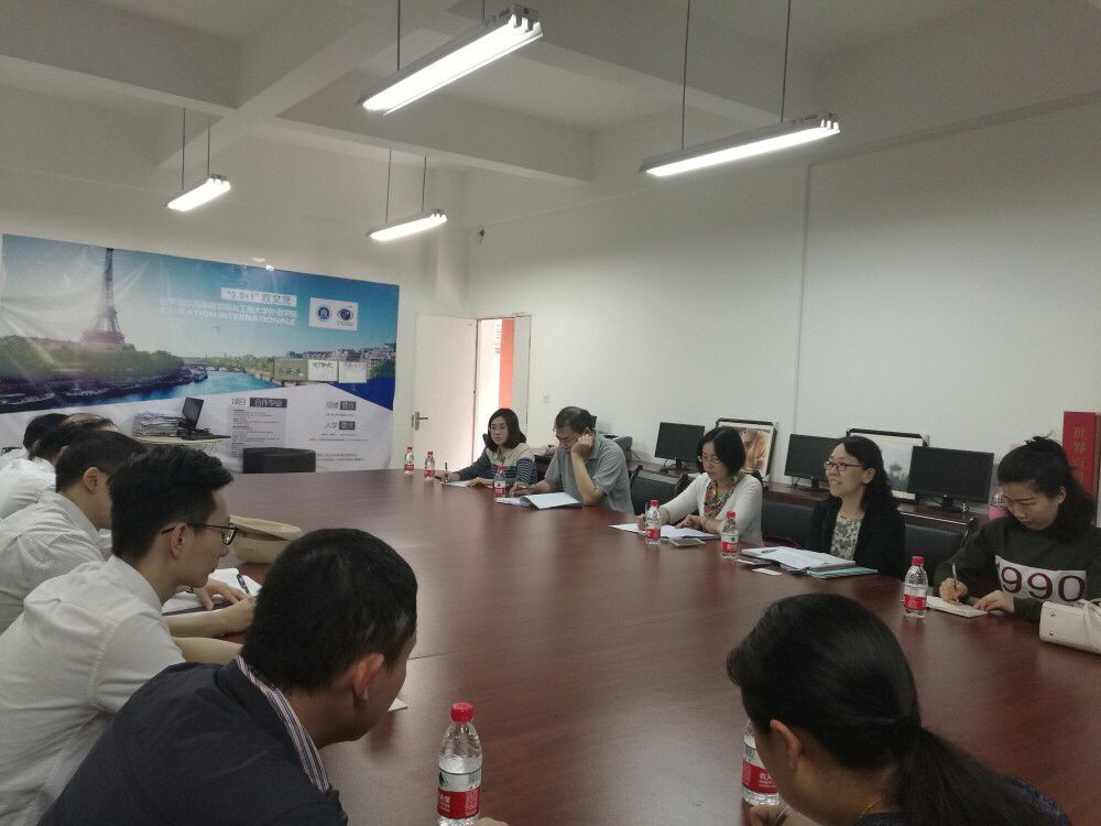 两位领导对两所高校的来访表示欢迎,介绍了学院英语及商务英语专业建设的整体思路和推进、专业分布情况、特色专业方向、专业课程设置、师资力量,实验室建设、实践教学改革、校企合作经验及学生考研的概况等。老师们引导客人参观了学院的信息化教学实验室、同声传译室、商务英语实训平台,并向来访高校展示了教学平台的功能。两所来访高校都对我校的教学平台及同传室新技术的应用情况非常赞赏。希望学习相关的经验。