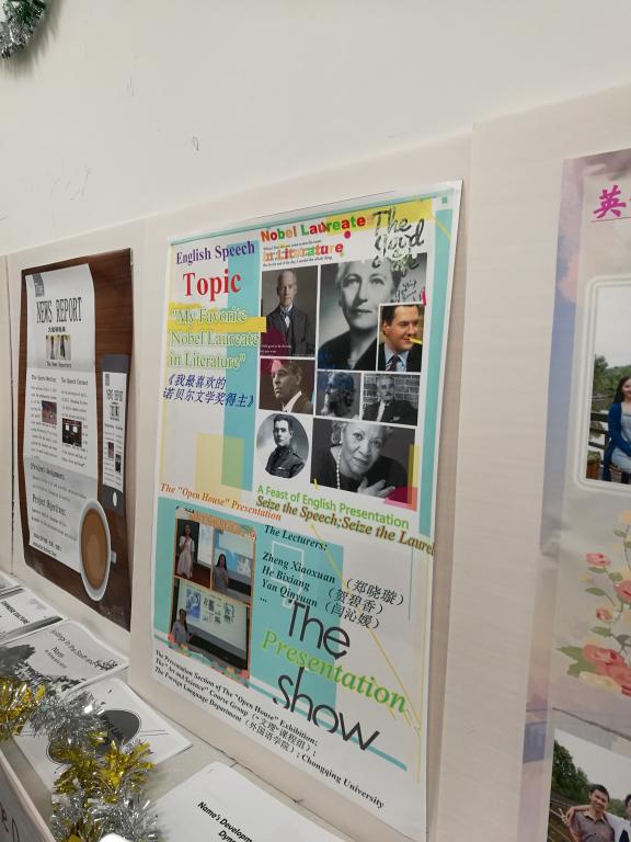 此次活动由重庆大学外语学院举办,基于大学外语不同的课程类型分为十五个展览室,对各个课程的教学理念,学习过程,学生成果及师生参与均进行了详尽的展示。其课程种类多样,除了大学英语课程外,还设置了写作,翻译,口语等学业素养英语系列课程;课程形式新颖,作业多采用小组任务形式,注重培养学生的合作能力,协调能力和英语的综合运用能力。通过观摩重庆大学大学英语课程的展示,我们阅读了重庆大学大学英语学生流畅的英文论文、倾听了学生们流利的口语汇演、看到了学生们展示的异彩纷呈的课程海报、感受到了学生们思维能力及自主学习能力的飞跃;从学生们能力的极大提升,我们深深地感受到了重庆大学大学英语教师对教学的热爱,对教学的倾情投入,也深刻地体会到了他们教学中的重重压力。