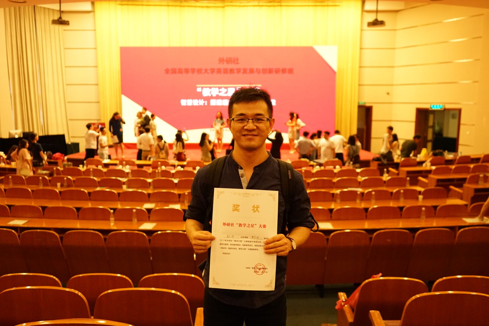 在高手云集的外研社“教学之星”大赛复赛中,雷定坤老师展现了扎实的语言功底、科学的教学理念、精心的课程设计、富有激情的精彩演示,获得了来自全国各高校专家及同仁的高度认同和赞扬,展现了我院师资队伍的实力与风彩。