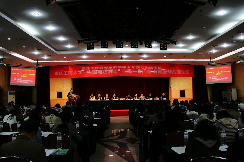 11月11日,由重庆工商大学主办的、 重庆市社科界第五届学术年活动资助项目“中国与世界:‘一带一路’与语言服务战略论坛”在重庆华商国际会议中心成功举行。来自全国40余所高校、30余家行业企业和政府机构的140余名代表参加了本次论坛。副校长苟朝莉教授出席开幕式并致欢迎辞。重庆市社科联党组成员、副主席潘勇、重庆市商务委员会服务贸易处处长冯蒙出席开幕式并分别讲话。