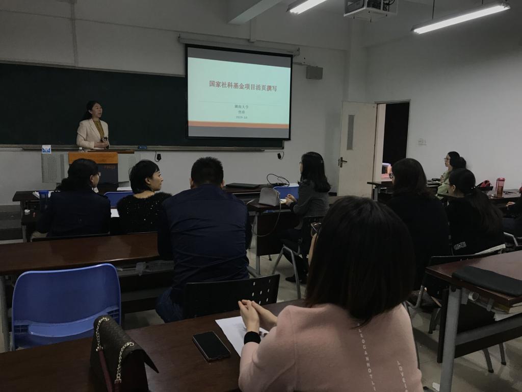 为提升外语学院教师科研立项水平,10月24日,我院邀请国际中国语言学学会会员、中国心理语言学专业委员会常务理事、湖南大学博士生导师曾涛教授开展关于国家社科课题申报的专题讲座。讲座由吴明军老师主持,拟参加2020年国家社科申报的老师们及团队成员参加了讲座。