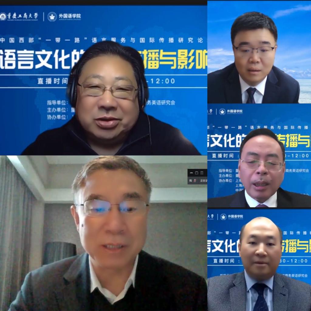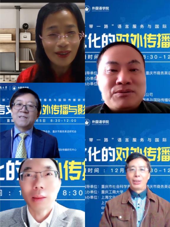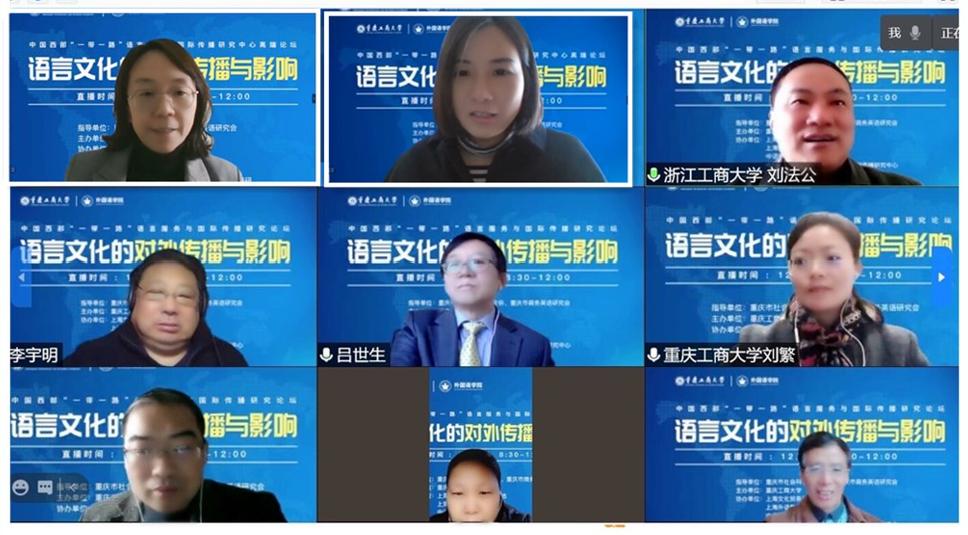 12月5日,我校在线上召开“中国西部‘一带一路’语言服务与国际传播研究论坛”。本次论坛在重庆社会科学界联合会和重庆商务英语研究会的指导下,由重庆工商大学主办,上海文化服务贸易基地、上海外语教育出版社和中语智汇科技有限公司等单位协办。本次论坛采用学术志平台在线直播方式,我校2138CC太阳集团班子成员和教师参加了论坛,在直播平台参与本次论坛的在线人数超过3600人。2138CC太阳集团院长周琳教授主持论坛开幕式。