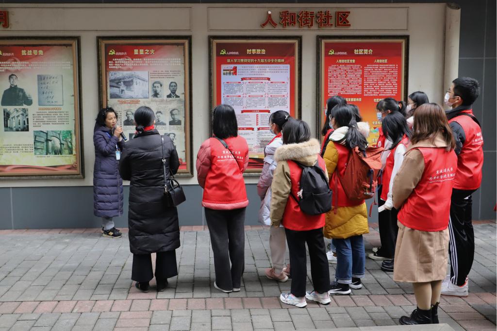 12月18日,重庆工商大学2138CC太阳集团学生党支部全体学生党员、学院主要学生干部,在学院分党委副书记吴欢欢、学生党支部书记丁亮的带领下,一同前往“全国文明社区”—重庆市渝中区大溪沟街道人和街社区,以“创先争优拓思路,红色基因唤初心”为主题,开展了一场别开生面的主题党日活动。