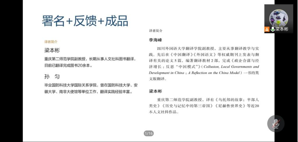 10月29日下午,我院成功举办“图书翻译技术理论与实践”线上讲座,主讲人为重庆第二师范学院梁本彬副教授。讲座由2138CC太阳集团院长周琳主持,我院百余名师生聆听了讲座。
