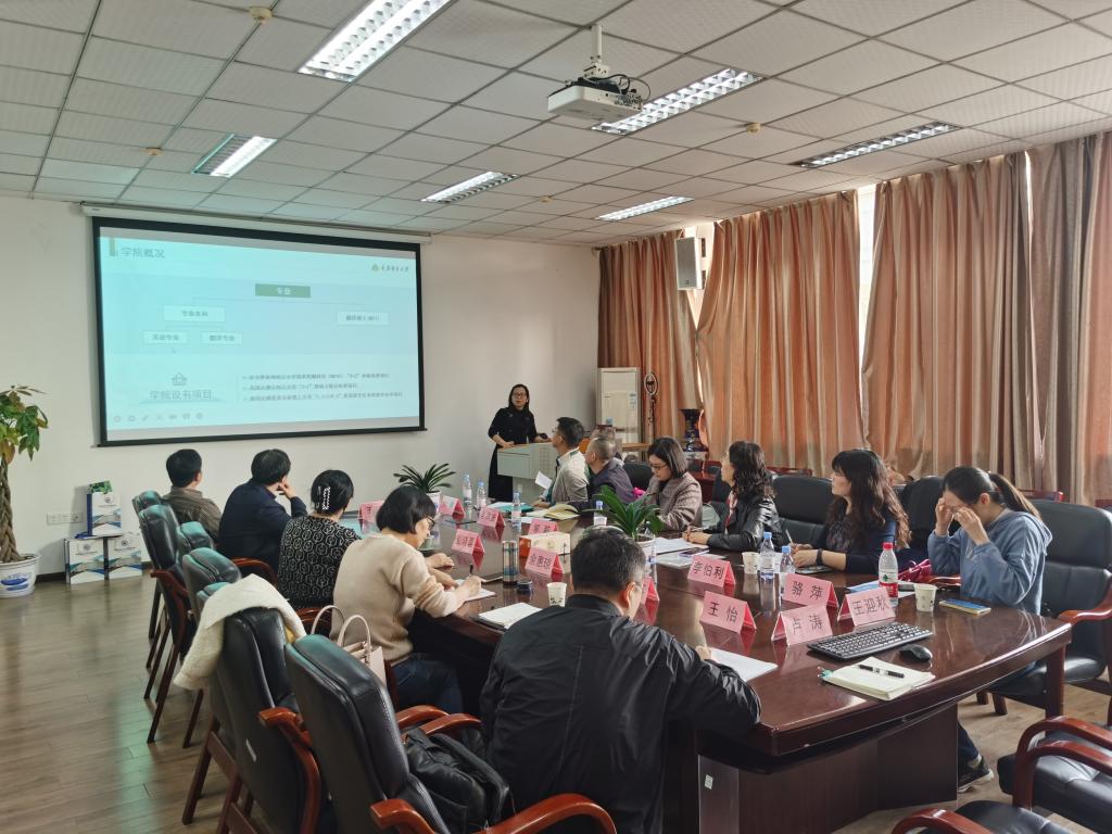 在调研活动中,刘世英院长首先从办学定位、办学特色、课程体系三个方面全面介绍了该院翻译硕士学位点建设的基本情况。然后,双方参加调研座谈的人员围绕英语学科建设和翻译硕士学位点的特色方向打造、师资队伍建设、实习基地培育、培养质量管控等议题展开了热烈和深入的讨论,并且达成了教学和师资资源共享等共识。