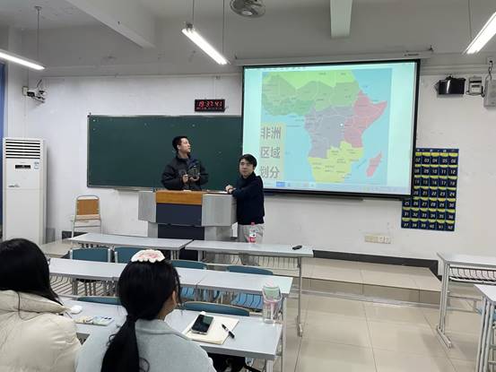 为了帮助新同学深入了解“一带一路”相关非洲国家并更好地认识就业市场,我院法语系于2023年12月20日晚在江北校区成功举办了以“策路前行·提前布局”为主题的导学活动。此次活动特邀请了回国探亲的14级校友杨超钞参与,杨超钞校友与同学们分享了他在阿尔及利亚、科特迪瓦和刚果(金)三个国家的生活和工作经验,并耐心解答了同学们对未来的种种疑虑。同时,法语系的郭韫老师也随机分享了其他校友在非洲的经历。