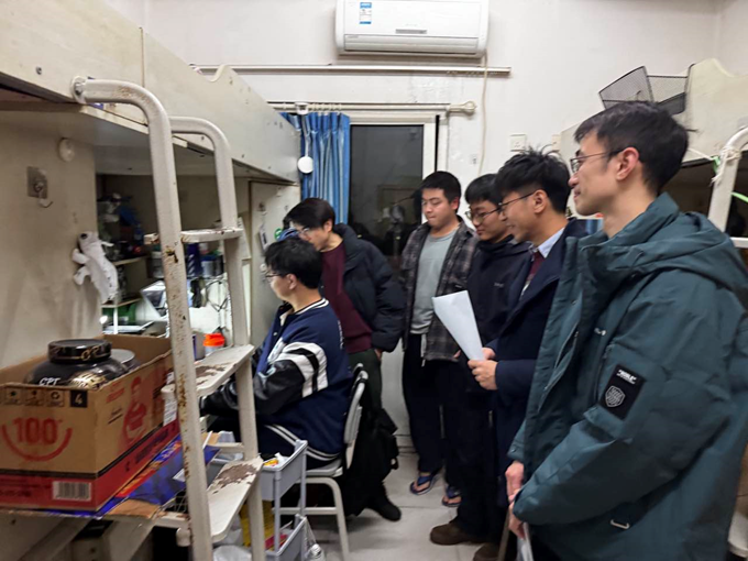 走访团队分组走访了16A3、南9、南14等楼栋,分不同年级学生宿舍,重点针对毕业班考研复试准备、就业困惑、低年级专业学习难点等问题展开调研。走访现场,英语系主任李洪波结合行业动态为英语专业张同学简历的优化提出建议;法语专业李同学纠结于是否驻外非洲,法语系主任周渝连线刚果金校友现场解答学生困惑;老师们还针对大四年级的考研复试、专八考试的情况给予了现场指导。
