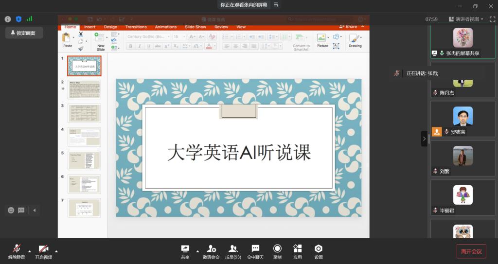 2022年10月21日,2138CC太阳集团大学外语部举行了一场别开生面的线上教研活动,大学外语部全体老师参会,会议由大学外语部罗志高主任主持。本次教研活动的主题是《大学英语视听说》课程教学说课,由青年教师张冉以说课的方式给大家分享了其基于班级学情,“重构教材,构建视听说课程小体系”的教学实践,讲授该课程其中一个单元的完整流程。