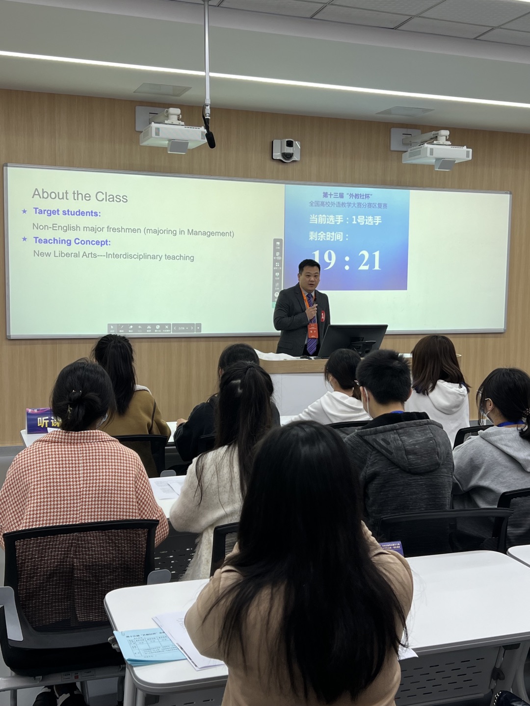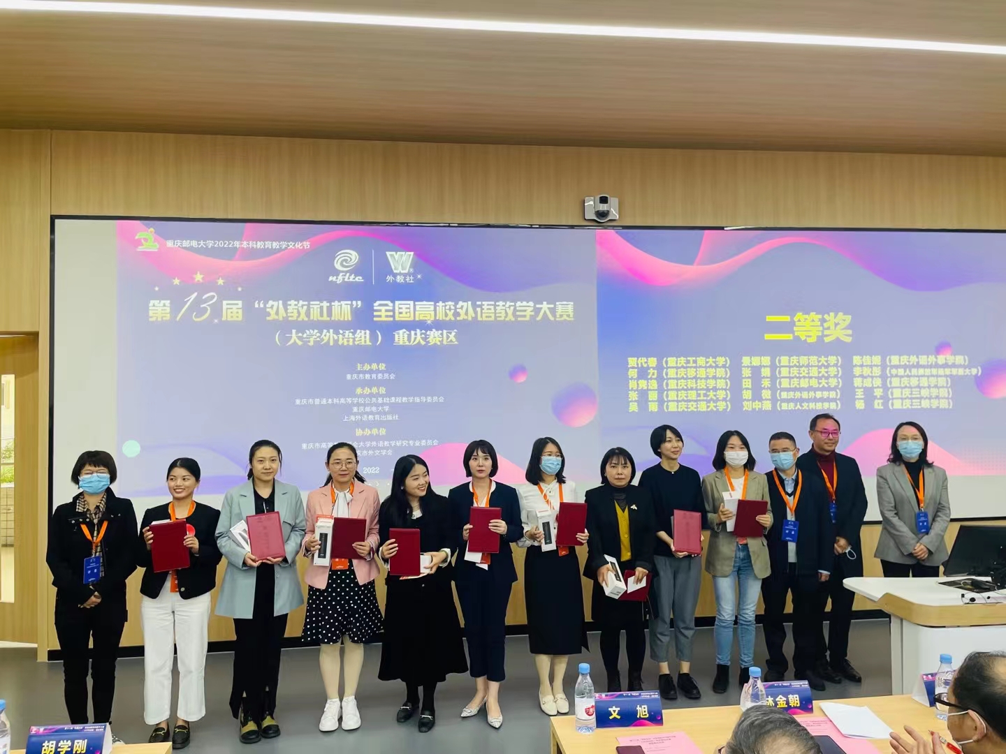 2022年11月6日,贾代春老师在第十三届“外教社杯”全国高校外语教学大赛重庆赛区复赛中获得重庆市视听说组二等奖的佳绩。