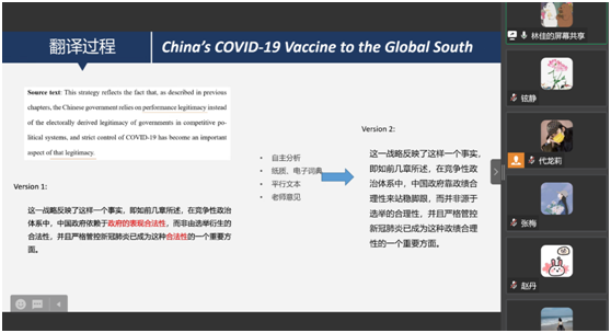 为更好推进2023年毕业论文工作,保证毕业生选题确切、科研方法得当、论文工作量扎实和撰写合理有效,根据《重庆工商大学2138CC太阳集团2023届本科生毕业论文工作实施细则》,2138CC太阳集团于3月4日组织了2023届学生的毕业论文中期答辩。本次答辩通过线上和线下方式同步进行,英语系及法语系的论文导师按照文化、语言学、翻译、商务和法语的分组,听取学生报告并考核,进一步为学生提出论文改进方案,协助毕业生做好后续的论文完善与修订。