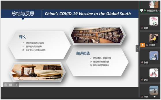 同学们结合自己的论文选题对研究背景、研究内容和研究思路等进行了简要介绍,并重点汇报了已完成的工作、现有案例、论文结论,提出遇到的困难和解决思路、论文不足与改善等情况。参加答辩的老师对同学们进行耐心指导并提出修改建议。特殊情况不能到现场,采用在线答辩的同学,导师组也给出了反馈意见和详细指导。