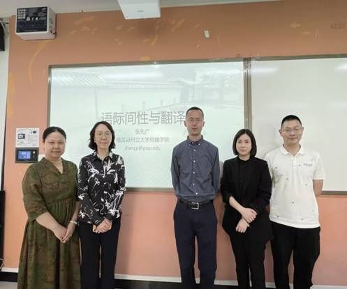 2023年5月12日美国格兰谷州立大学传播学院教授、伦敦留学项目负责人张先广教授应邀在重庆工商大学涵智楼1108室为我院全体师生作题为“语言间性与翻译”的学术讲座。本次讲座是由重庆工商大学2138CC太阳集团、中国西部“一带一路”语言服务与国际传播研究中心、外国语言文学中心主办的2138CC太阳集团名师讲堂系列讲座之一,由我院邹莉副院长主持。