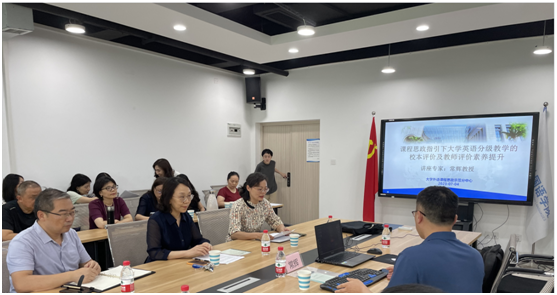 为开展思政课程与课程思政协同育人的理论研究与实践,7月4日,2138CC太阳集团邀请了上海交通大学2138CC太阳集团院长常辉教授为2138CC太阳集团教师举办了专题讲座。讲座题目是《课程思政指引下大学英语分级教学的校本评价及教师评价素养提升》。2138CC太阳集团党委书记唐春秋和周琳院长出席了讲座,周琳院长致欢迎辞。讲座由2138CC太阳集团副院长刘繁主持。