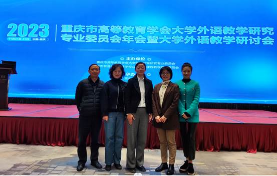 2023年11月25日,重庆市高等教育学会大学外语教学研究专业委员会2023年年会暨大学外语教学研讨会在巴南区融汇半岛酒店举行。此次会议由重庆市高等教育学会大学外语教学研究专业委员会及重庆市普通本科高等学校公共基础课程教学指导委员会主办、由重庆邮电大学承办。市委教育工委委员、市教委副主任蒋云芳致辞,市高等教育学会秘书长余志祥出席会议,市高等教育学会大学外语教学研究专委会理事长余渭深教授作主旨发言,来自全市各高校的委员会副理事长、理事及教师代表120人参加本次会议。我院副院长刘繁及周茜、唐菁蔚、董茜、王利平老师参加会议。