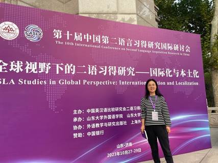2023年10月27日至29日,由中国英汉语比较研究会二语习得研究专业委员会主办,山东大学2138CC太阳集团承办,外语教学与研究出版社、上海外语教育出版社协办的第十届中国二语习得研究国际研讨会在山东济南召开。来自全国各地,以及美国、英国、新西兰、澳大利亚等十多个国家的多位知名专家和650余名学者代表参加会议。我院英语系教师张林玲参加会议并在小组论坛宣读了题为“The Disillusioned Self: L2 Demotivation among Undergraduate English Majors”的论文。