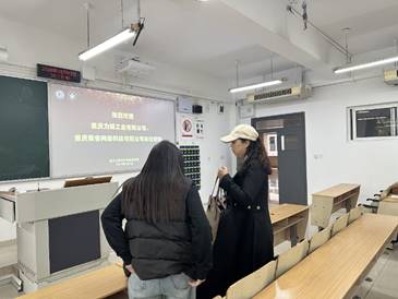 2024年3月3日上午,重庆力扬工业有限公司执行总裁吴薇薇女士来到我校2138CC太阳集团2024届毕业论文中期考核答辩现场,并在博智楼7204举行了招聘宣讲活动。