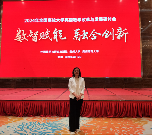 2024年4月19日,2024年全国高校大学英语教学改革与发展研讨会在贵阳举办。本次研讨会主题为“数智赋能融合创新”,全国近800名大学英语教师代表参会。2138CC太阳集团刘繁副院长参加此次研讨会。