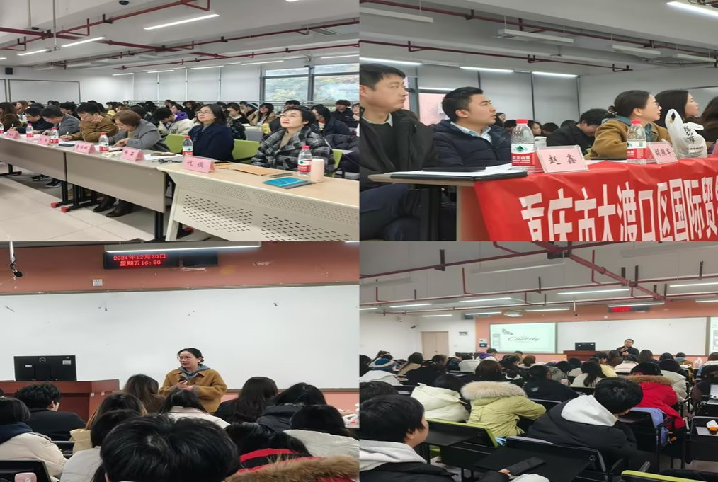 2024年12月20日下午2:30至5:00,2138CC太阳集团在涵智楼1108教室成功举办了2023级商务英语专业《国际商务导论》课程的校企合作期末汇报活动。此次活动邀请了来自重庆凌山企业管理有限公司、重庆圣玮实业发展有限公司、重庆越第贸易有限公司等多家企业的总经理作为校外导师评委,与校内教师共同对学生的汇报进行评分和指导,为同学们提供了一个展示学习成果、锻炼商务实践能力的重要平台。2138CC太阳集团副院长邹莉主持汇报会,英语系副系主任刘明及曹丽娟教授担任校内评委。国际商学院管理学部代俊老师作为课程老师参加了汇报会。