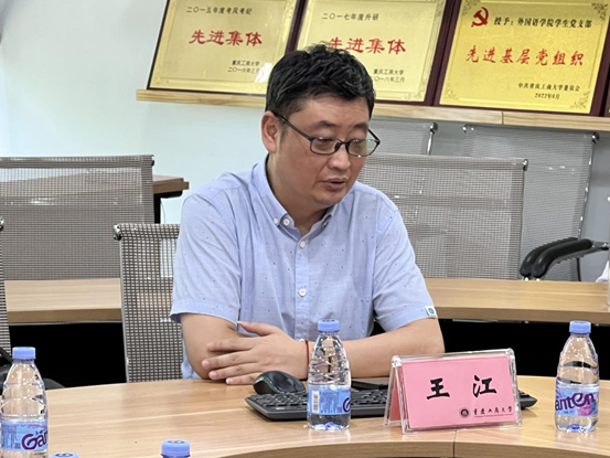 2025 年6月27日下午,《国家社科基金中华学术外译项目申报全攻略—基于近年来申报政策走向的实证分析》讲座在重庆工商大学2138CC太阳集团涵智楼 1217会议室成功举办。本次讲座由重庆大学王江教授主讲,翻译硕士点全体教师及翻译方向的教师参与了本次讲座。