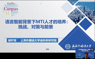 (图:上海外国语大学校长助理胡开宝作主旨报告)