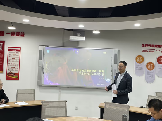 10月25日下午,重庆理工大学2138CC太阳集团英语系主任杜云飞教授应邀来我院为教师作《外语学者的发展新进路:国际学术期刊的认知与发表》专题讲座,讲座由邹莉副院长主持。