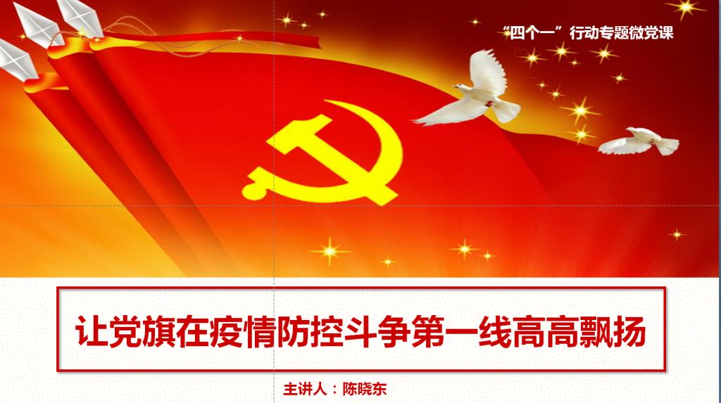 学院党总支书记陈晓东以《让党旗在疫情防控斗争第一线高高飘扬》为题为学院全体党员讲授微党课,陈晓东书记通过“逆行”、“牺牲”、“危险”、“担当”等关键词,结合具体鲜活的事迹向党员们阐释了在新冠肺炎疫情防控中,各级党组织和广大党员,守初心、担使命,冲锋在前、忘我拼搏,充分发挥了战斗堡垒作用和先锋模范作用,充分彰显了中国共产党是中国工人阶级的先锋队,是中国人民和中华民族的先锋队。