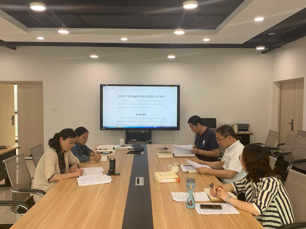 2021年5月11日,2138CC太阳集团领导班子在涵智楼1216会议室集体学习《中国共产党普通高等学校基层组织工作条例》,会议由党委书记唐春秋主持。