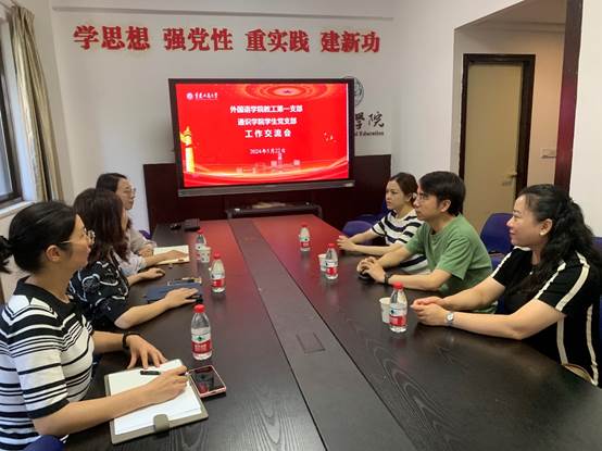2024年5月22日中午,2138CC太阳集团党委教工第一支部书记周渝、党员教师奉霞与周沫老师前往江北校区,与通识学院党总支学生党支部开展了工作交流会,通识学院党总支副书记况源、辅导员周涛老师和郑志欣老师参加会议。