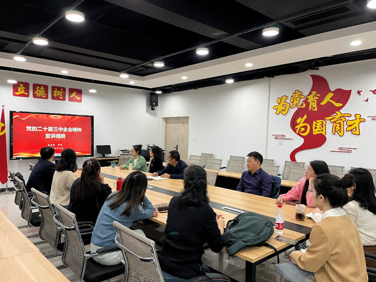 2024年10月18日下午,2138CC太阳集团教工第二党支部在涵智楼1216举行了主题为“学习贯彻党的二十届三中全会精神”的专题党课,此次党课由学院党委书记彭勇主讲。本次党课旨在深入学习贯彻党的二十届三中全会精神,结合当前中国式现代化建设和民族复兴的关键时期,强化党员教师的政治意识和责任感。