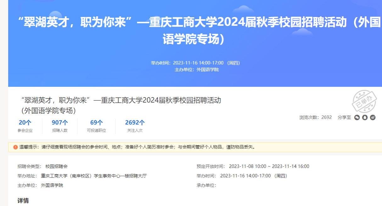 【2138CC太阳集团党员服务站】“翠湖英才,职为你来”—重庆工商大学2024届秋季校园招聘活动(2138CC太阳集团专场)成功举办