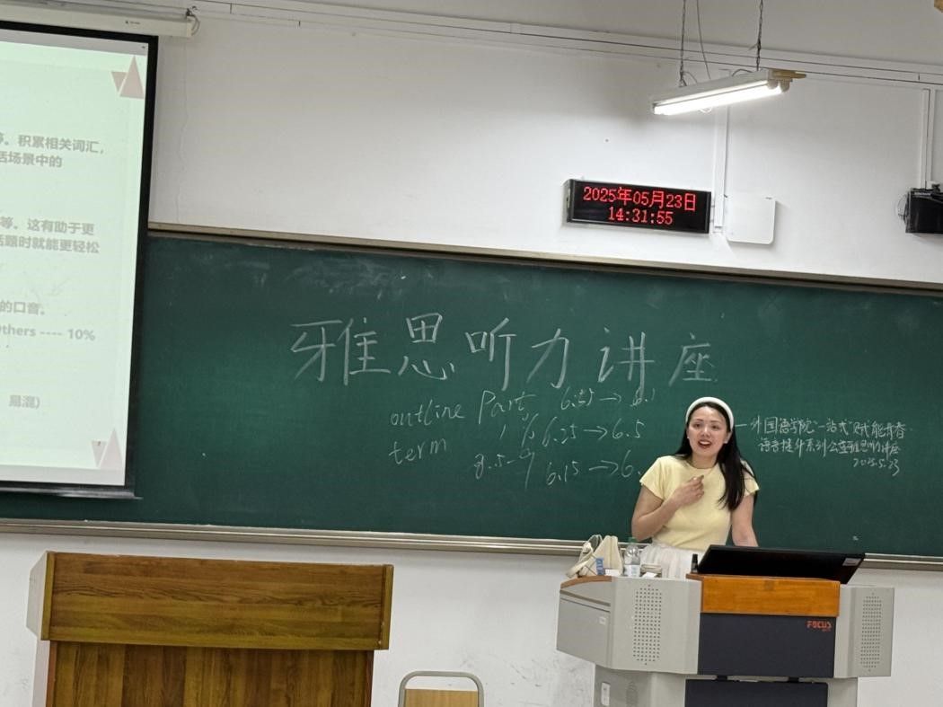 2025年5月23日,由大学外语课程思政示范分中心与2138CC太阳集团党员服务站联合主办的“一站式”赋能青春.语言提升雅思听力公益讲座在南岸校区博智楼07221教室顺利举行。讲座特邀我校经验丰富的张洵老师主讲。