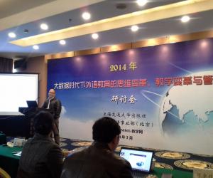 上海交通大学2138CC太阳集团教授、《当代外语研究》主编杨枫以“大数据带给大学英语教学的挑战与机遇”为题,为与会老师分享了在大数据时代大学英语教学面临的挑战及应对之道。他说在大数据时代互联网教育与学校教育逐渐分离;大数据时代,视频成为新的教育载体,在不远的将来,全世界每一个领域,每一门课程都会出现一些经典视频。未来大部分老师,可能会是课堂的组织者和学习的引导者,而不是知识的讲授者,其权威性将下降,师生关系将面临改变。学校里将会有更少的课堂与更多的实验室,更多的交往与更少的讲授,更多的互动与更少的灌输,更个性化的服务和更灵活的学制。将来未来学校将得益于互联网,教育将得到新生的机会。他指出大学英语这类技能层次类课程完全具备可拷贝性,可以交给大投入的电影制作模式完成。大学英语教师将成为教练,师生将走向英语实践训练场。大学英语教师必须在教育哲学思想、英语实践技能、英语教育技术、英语学科应用方面做好长足的准备。