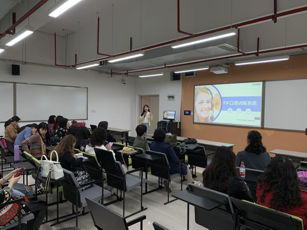 2021年3月19日下午,大学外语部在涵智楼1108会议室举行FIF口语训练系统学习教研活动。科大讯飞高教业务部解红琼老师从FIF口语训练系统的功能、特点、使用细则、案例分析等方面对FIF口语训练系统进行培训和演示。