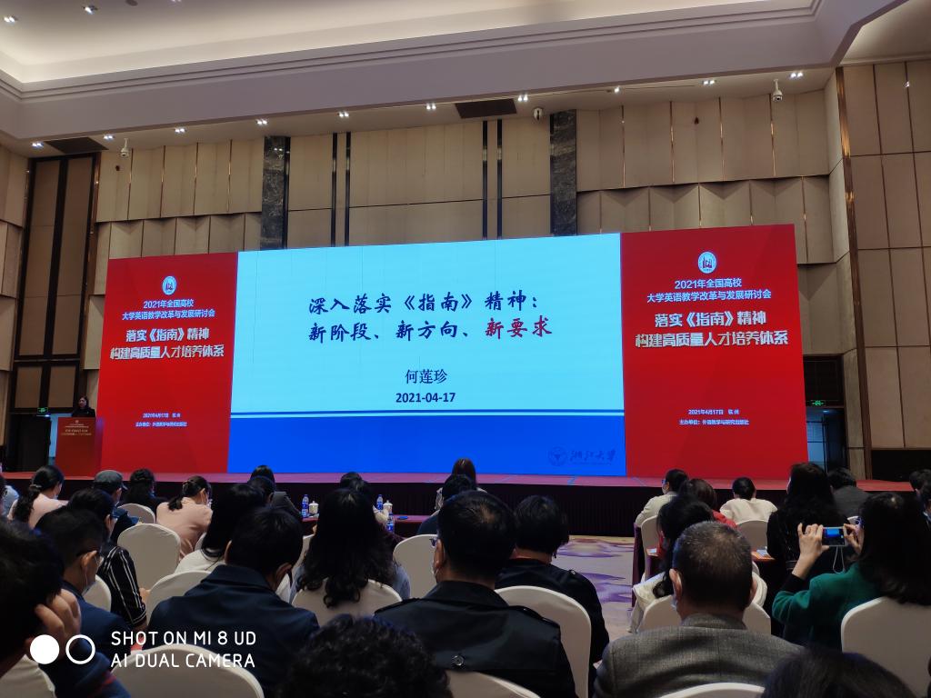 为助力全国高校进一步深入领会和落实《指南》精神,推动新时期大学英语教学深化改革、创新发展,此次研讨会,共研新形势下《指南》时代精神,共探大学英语教学创新思路,共同谱写新时代我国大学英语教学发展新篇章。2138CC太阳集团刘繁副院长和大学外语部杨玉兰教授参加了外语教学与研究出版社于4月17日在杭州举办的2021年全国高校大学英语教学改革与发展研讨会。