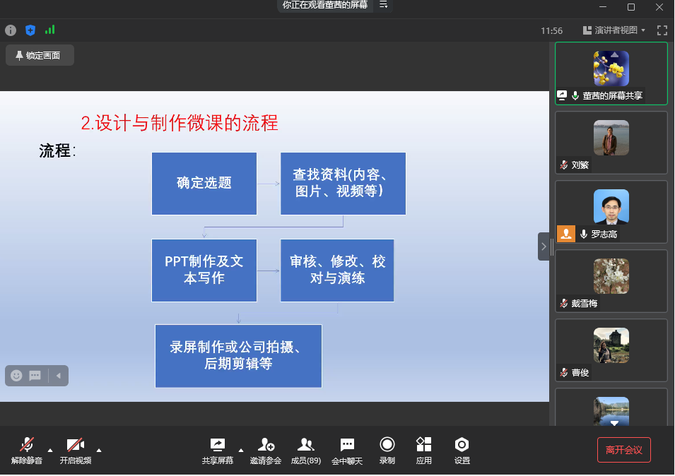 董茜老师曾多次参加校、市级的教学比赛并获奖,教学经验丰富并深受学生喜爱。在此次教研活动中,董老师结合自己的参赛经历,与老师们分享了她在微课设计与制作中的收获与经验。董老师的分享内容丰富,从微课的特征与作用,到微课设计与制作的注意事项,再到微课制作的工具。董茜老师的分享既有严谨的理论支撑,又有生动的案例分析,道术结合,给听众留下了深刻印象。