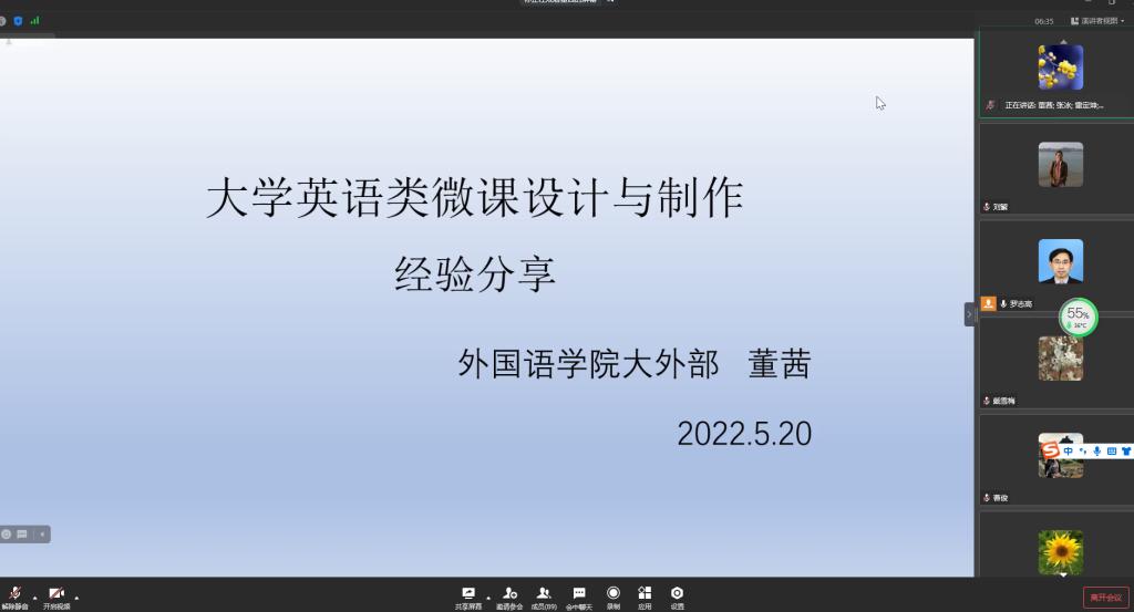 2022年5月20日下午,2138CC太阳集团大学外语部开展了主题为“微课和课程短视频制作”教研活动。此次教研活动由大学外语部主任罗志高教授主持。大学外语部董茜老师和重庆靖帛天域科技发展有限公司的微课建设负责人邱源老师分别分享了微课、慕课制作的经验及注意事项。