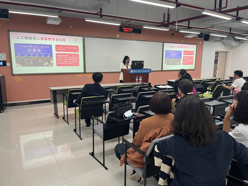 教研活动伊始,大学外语部邀请了智慧树重庆课程总监、金课咨询师王文丹女士为大学外语部教师开展了主题为基于知识图谱的数智化课程建设与应用的讲座,推动一流课程建设。王文丹女士首先介绍了人工智能深入教育教学的全过程,以及当前课程建设的新趋势。数智化课程以知识图谱为依托,以人工智能为支撑,重构课程体系与教学设计并运用人工智能技术赋能教学全过程,最终达到提升人才培养质量的目的。王文丹女士详细分析了“六维”知识图谱建设模型,从契合新一轮评估的主要特点以及行业需求两方面,介绍了从专业能力突破方面建设知识图谱体系及其优势。王文丹女士指出在知识图谱建设过程中,需结合专业培养目标,分析当前各大企业招聘信息,分析用人需求和真实工作内容,建设岗位能力模型。课程知识图谱可成为促进学生个性化学习的引擎,搭建知识与能力之间的桥梁。最后,王文丹女士就教师及学生如何使用AI智能伴学,达到以智助学实现个性化学习的目的展示了AI助教的学习方式和流程。