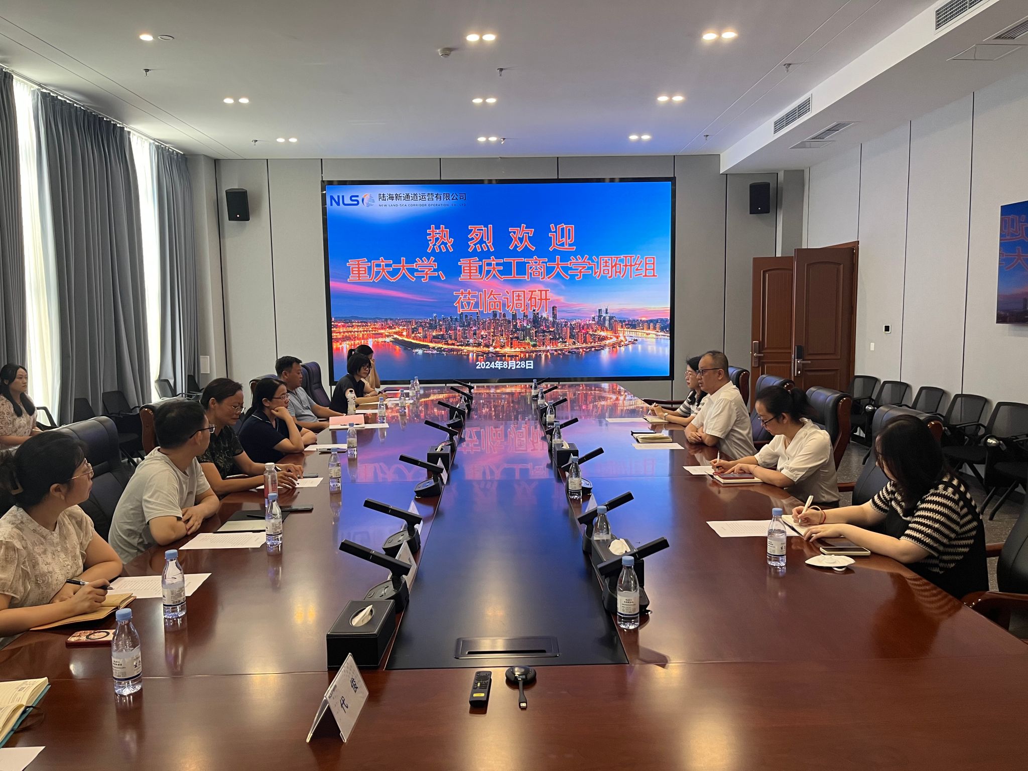 2024828日,为推动产教融合与人才培养,进一步对接国家重大战略需求,探讨编写有重庆特色的外语类通识商贸物流教材,在重庆市政协委员、重庆大学2138CC太阳集团彭静教授的协调和帮助下,重庆工商大学2138CC太阳集团副院长刘繁、大学外语部主任罗志高带领学院专任教师,与重庆大学2138CC太阳集团彭静教授,重庆大学出版社高小平主任组成调研团,前往重庆陆海新通道运营有限公司进行调研,深入了解西部陆海新通道建设情况。