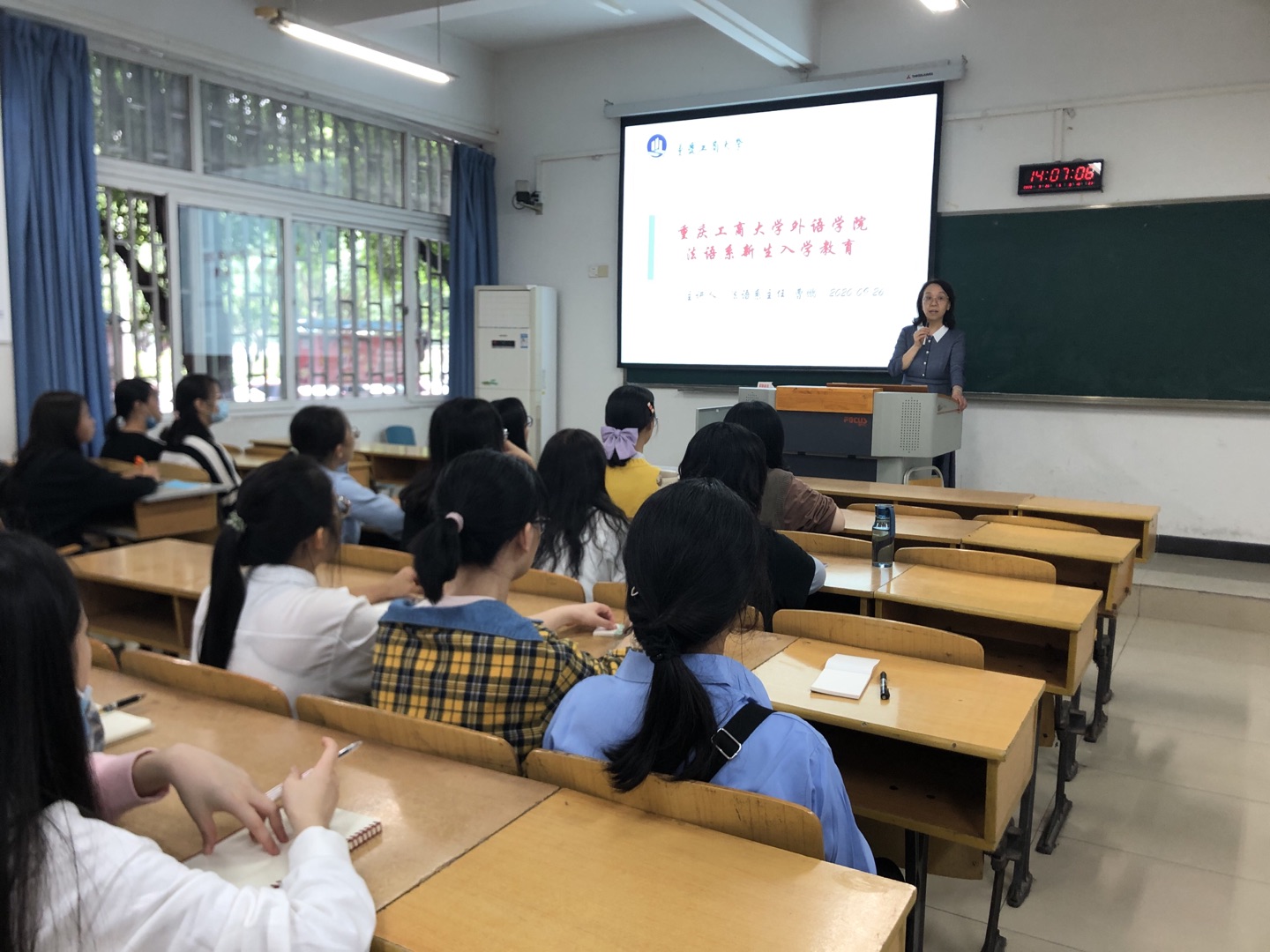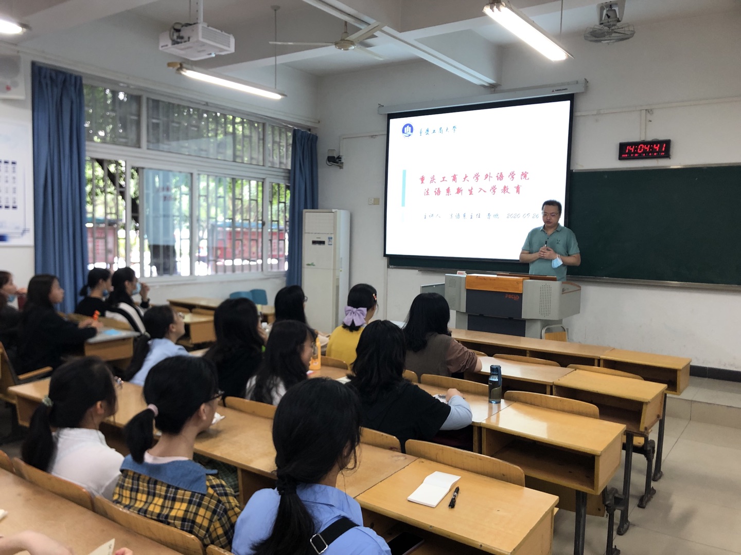 曹鹏主任结合外语学院人才培养方案向新生们详细地介绍了法语专业的课程、学分设置、能力要求、实践环节等并对2020级新生寄予殷切希望,他期望同学们能够在适应新环境的同时,树立正确的人生目标和人生态度,正确认识和客观评价自我。