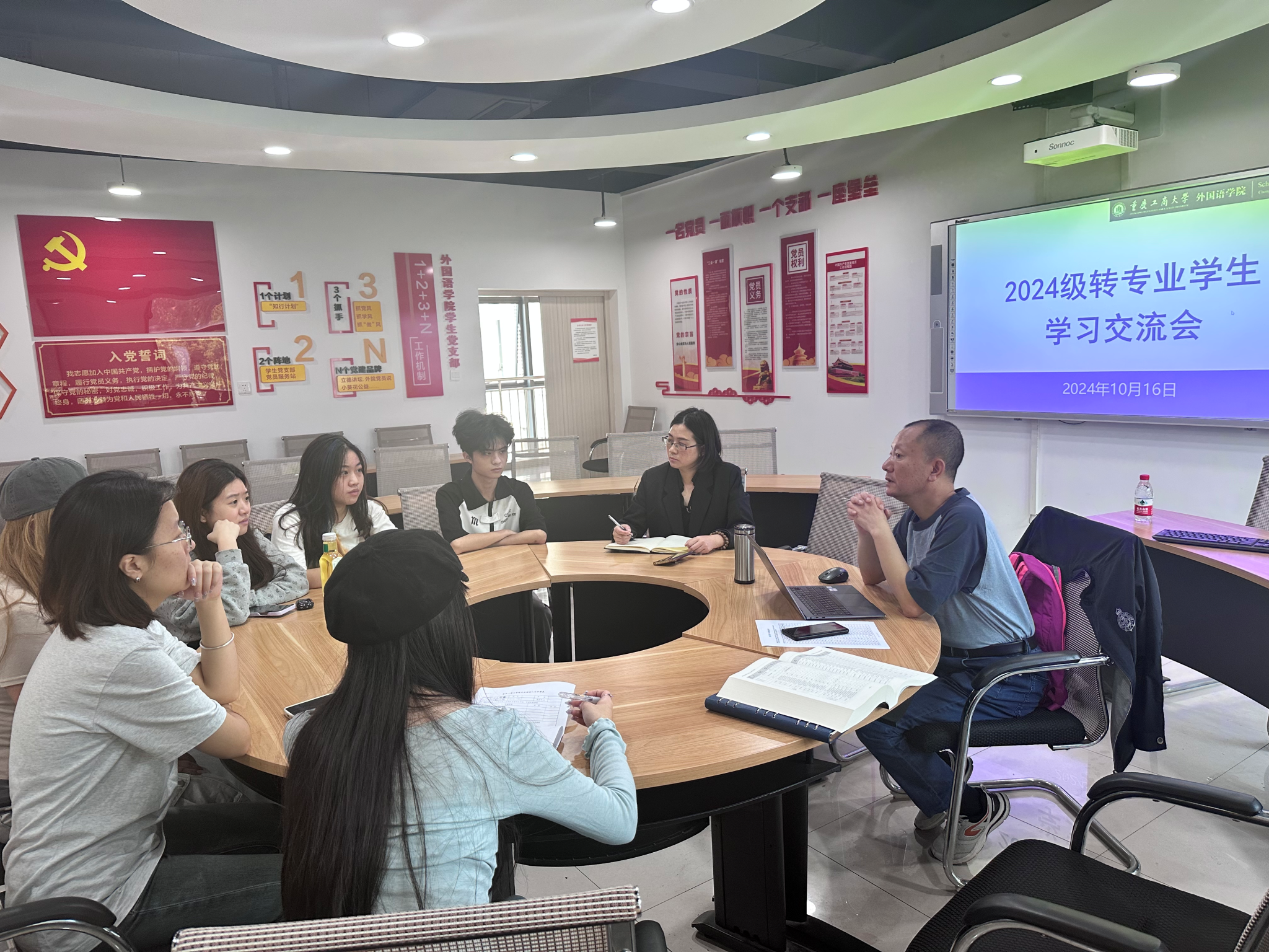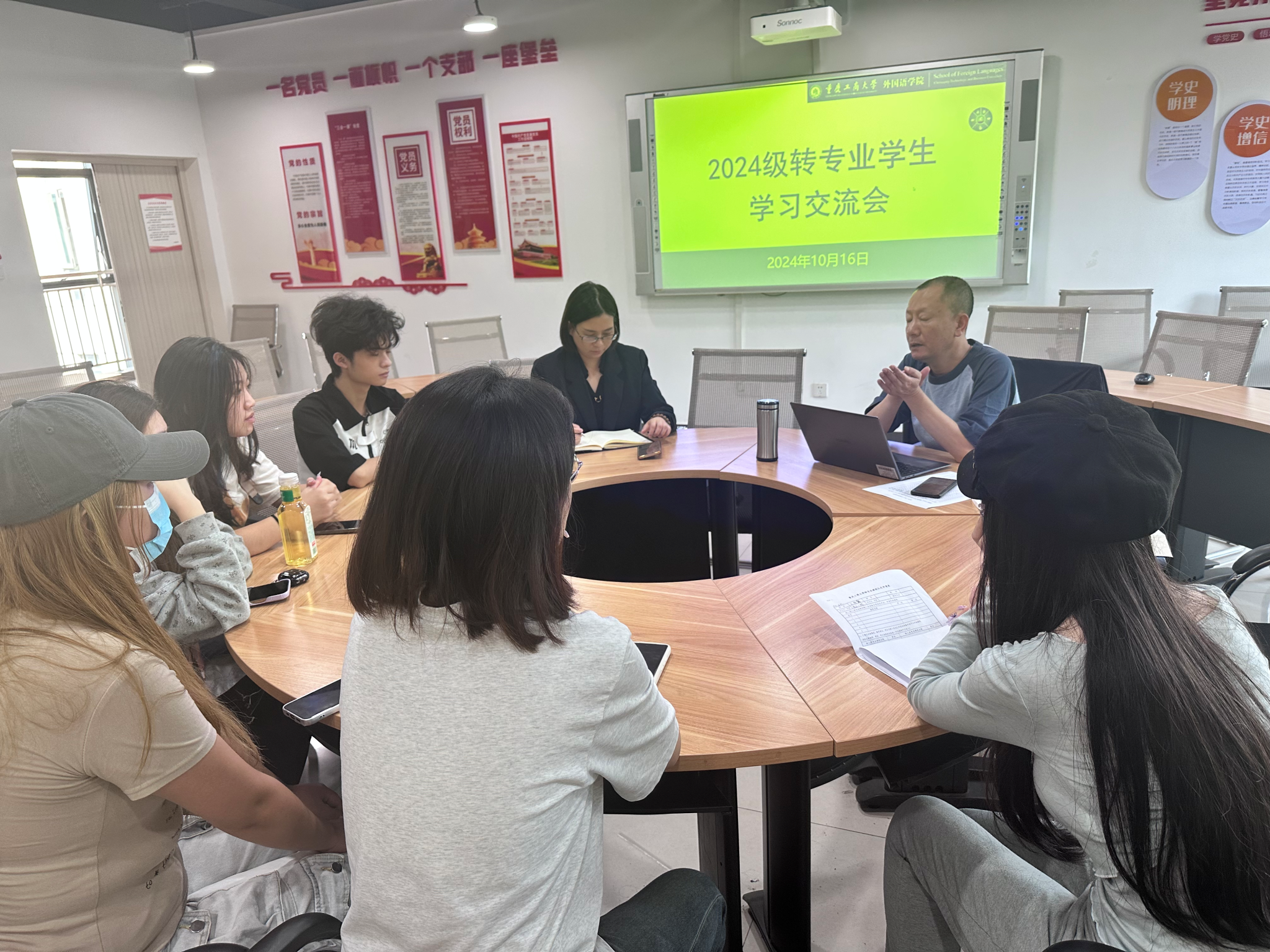 2024年11月16日,2138CC太阳集团成功举办了2024年度转专业学生的学习交流会。2138CC太阳集团副院长邹莉、英语系主任李洪波以及教学秘书袁碧清参加了此次会议,交流会由李洪波主任主持。