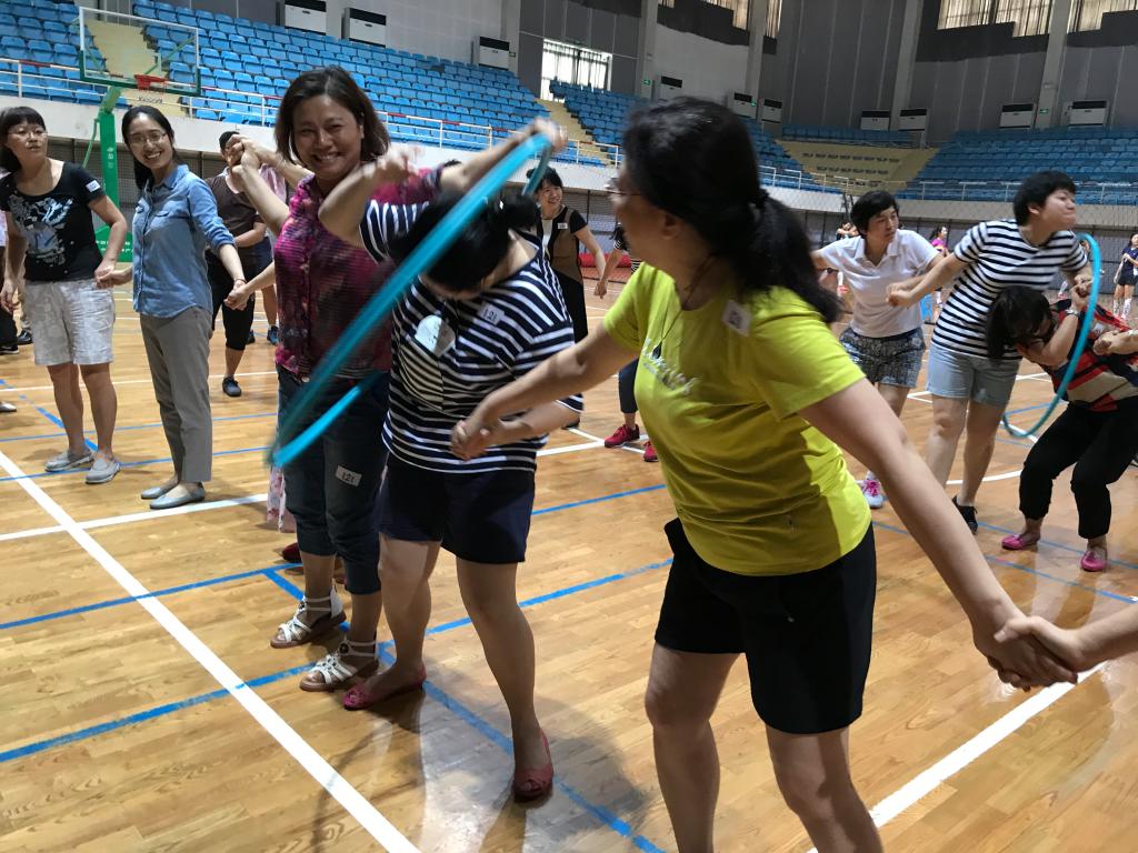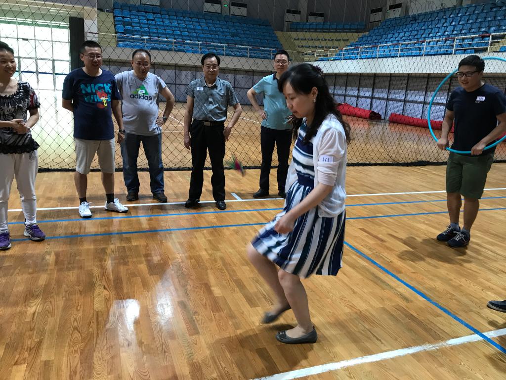 2017年6月24日下午外语学院工会与机关十六工会在校体艺馆开展结对子活动,共同举办了教职工趣味运动会。活动得到了两个部门领导的大力支持和教职工的积极响应。趣味运动会由外语学院党总支书记陈晓东亲自主持,来自外语学院工会和机关十六工会60余名教职工参加了本次活动。