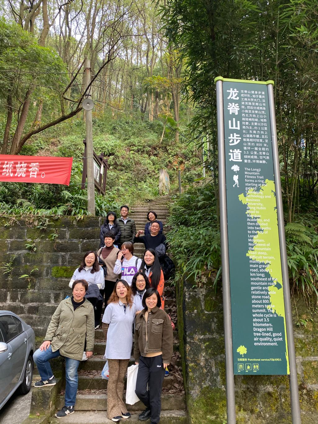 本次活动的路线为"涵智楼七层平台-国际商学院-翠林宾馆-南山书院-龙脊山腰-龙脊山山顶-返回涵智楼七层平台",并建议老师们在保证身体健康的前提下,量力而行。虽然已进入冬季,但阳光明媚、空气清爽。整个活动中,大家的脸上始终洋溢着冬日暖阳般的笑容,工作中的热情与韧劲在爬山过程中再次充分展现。