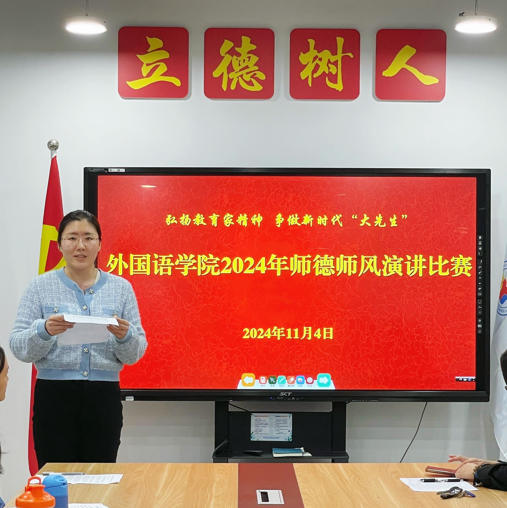 为弘扬教育家精神,引导教师坚定理想信念、争做新时代“大先生”,全面提升我院教师队伍整体素质,2138CC太阳集团工会于11月4日中午, 在涵智楼1216会议室成功举办2024年师德师风演讲比赛。学院全体院领导出席并担任此次比赛的评委。