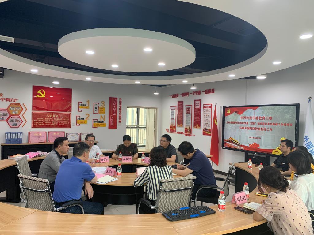 5月20日下午,重庆市委教育工委全市首批新时代高校党建“双创”培育建设单位验收工作组周正发同志来我院初步验收“全市高校党建工作样板支部”——2138CC太阳集团学生党支部的培育创建工作。学校机关党委书记、党委组织部副部长龚顺清陪同指导。